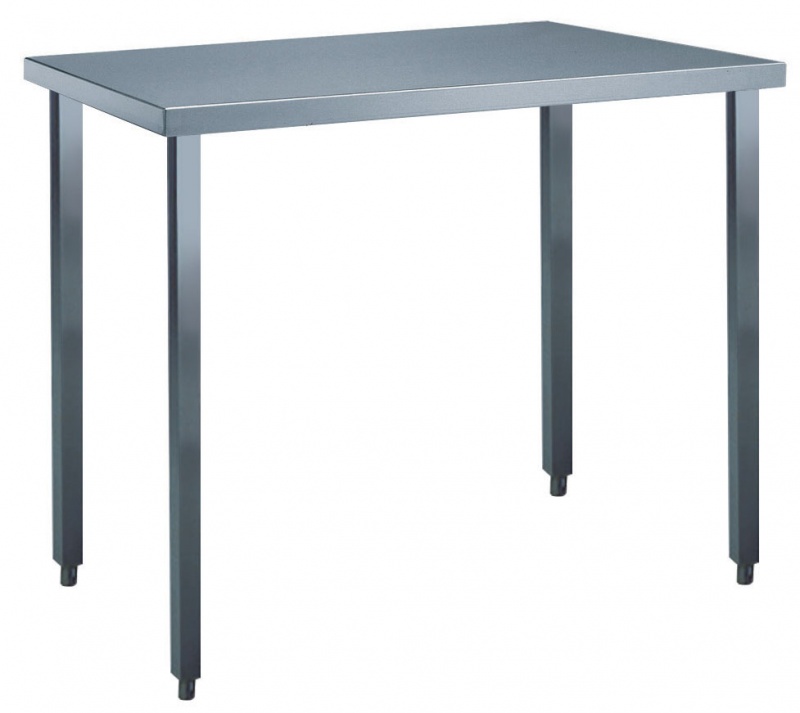 Worktop in 304 AISI stainless steel with upturned edges and under panel made of sound deadening material. Square section legs 40x40mm in 304 AISI stainless steel with adjustable feet. Delivered disassembled.