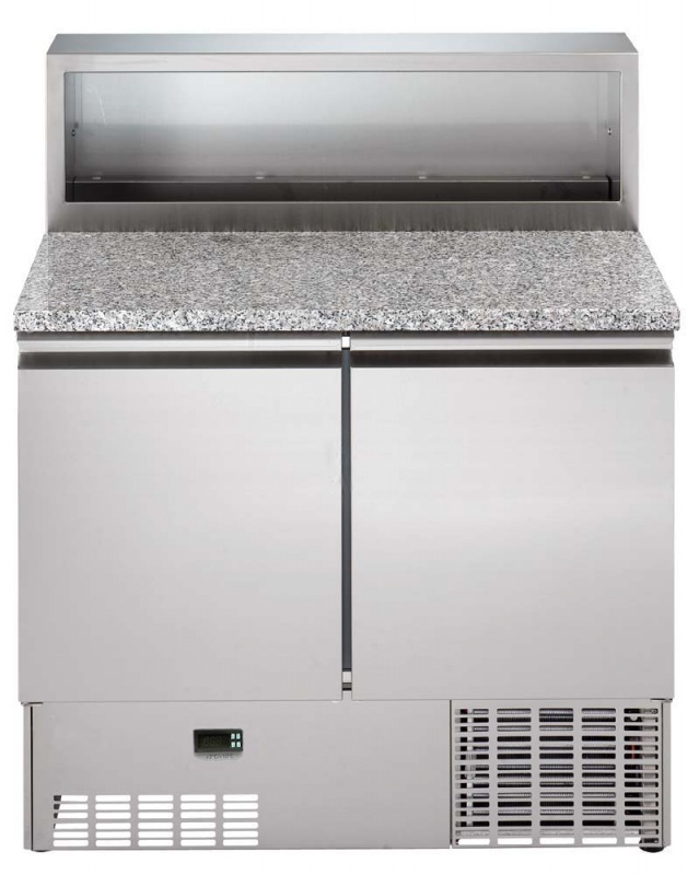 Saladette 250 Ltr., mit Aufsatz für GN-BehälterAbdeckung aus Marmorgekühlter Aufsatz für 5 Behälter GN 1/6 (nicht enthalten)Schrankraum geeignet für Behälter GN 1/1
