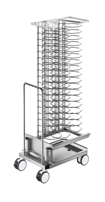 Küchenzubehör Bankettwagen mit Gestell für 54 Teller für 20 GN 1/1 SkyLine und Schockkühler/-Froster, 74mm Abstand.