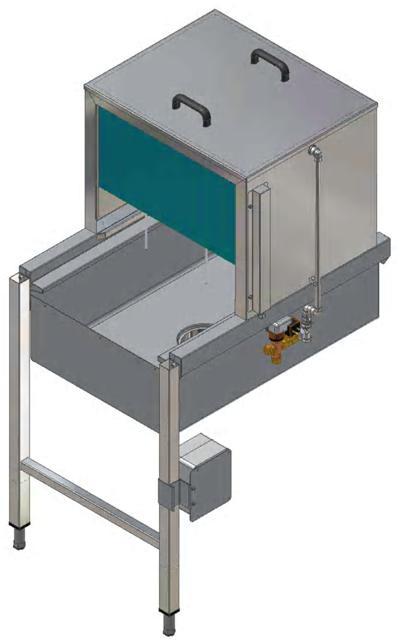 Manufactured from AISI 304 stainless steel. Front and roof sections are simply lifted off for easy cleaning. Designed for automatic pre-washing of dishwashing racks 500x500mm. To be placed on a rack conveyor with deep basin or conveyor which is provided with strainer box (not included). Water consumption: about 15 lt/min of cold water from the network, sprayed out through two upper and one lower spraying arms.Suitable for rack type dishwashers with feeding direction: from left to right.