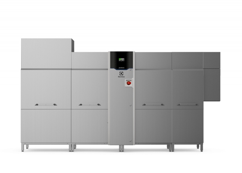 Unit to be Electrolux multi-rinse rack type dishwasher with dryer. Operating direction _ left to right or _ right to left. Featured built-in Energy Saving Device (ESD) recovers the heat inside the machine to heat up incoming cold water to the boiler. Multi-rinse area with built-in Wash-Safe Control system and rinse booster pump guarantees constant rinse pressure. CLEAR BLUE filtering system removes majority of soil from the wash water to ensure clean water for long time. Included medium pre-wash zone works with cold water of max. 40 °C Maximum Water Contact (MWC) wash arms are positioned along the full length of the wash tank. Powerful wash pump and spray arms guarantee cleaning. Washing is done with water circulating at 55-65°C. Final rinsing is done with clean water heated up to 85°C that is re-used in several phases in pre-rinse at around 70°C. Multi-rinse with double rinse tanks and multi rinse arms re-uses rinsing water several times to ensure hygiene on washed wares. Constant 0.4 liter/rack rinse water consumption of cold water in any conveyor speed. Three conveyor speeds are selectable by the operator, one for maximum capacity, one compliant to DIN 10510 and one certified according to NSF/ANSI 3. Included large dryer provides completely dry dishes using external and internal air. Intuitive touch screen control panel provides easy communication on different levels. Large counter-balance door in all tanks has heat and noise insulation with easy internal access. Easy drain of water done through control panel. Standard end of the day self cleaning cycle and sanitation cycle both including internal side of the door. Modularity allows split delivery, customization and upgrade on-site and over time.