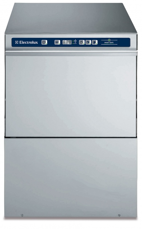 304 AISI stainless steel front and side panels, door, control panel and wash tank. Double skinned door. Wash tank with rounded corners. Wash arms and jets in polypropylene, easy to remove. 3 wash cycles 90/120/240 seconds. Soft start wash pump to avoid accidental breakage of dishes/glasses. Washing system with rotating washing arms, large capacity wash pump and tank volume. Built-in atmospheric boiler (2,8 kW), 5.8 liter capacity (allows cold water supply from 10-60°C), with rinse pump to guarantee a constant hot rinse temperature of 84°C. Wash Safe Control assures the correct water temperature and pressure during the rinse phase to guarantee a perfect rinsing performance independent from the water pressure in the network (min. 0,5 bar). Boiler with 304 welding for protection against corrosion. Drain pump. Electronic controls with temperature display. External connecting box protected by a waterproof plastic cover. High efficiency air gap (class A) in water inlet circuit to avoid water being syphoned back into the network as a result of a sudden drop in mains pressure. Pre-arrangements for HACCP system implementation and energy Management device. Self-cleaning cycle. Rinse aid dispenser. Hourly capacity: 720 dishes/40 baskets mm500x500.Supplied with: n. 1 basket for plates and n. 1 cutlery holder.