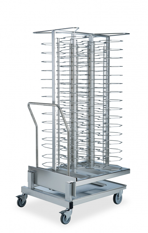 Banquet trolley with rack holding 92 plates for 20 GN 2/1 oven and blast chiller freezer, 85mm pitch.