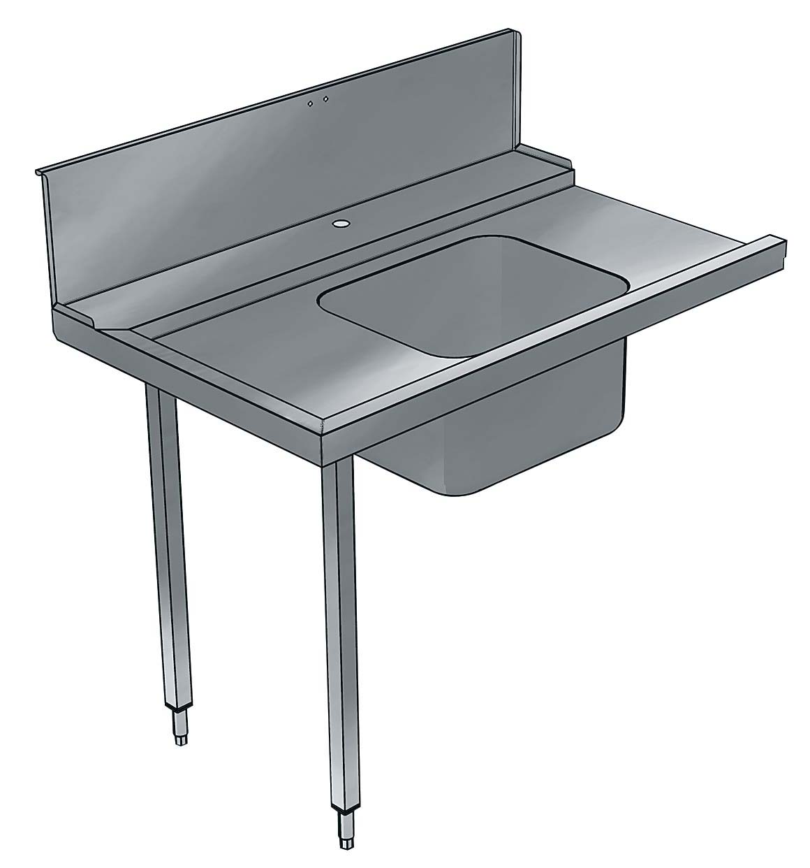 For hood type dishwashers. Constructed in 304 AISI stainless steel. Backsplash mm300h. N. 2 square 40x40mm tubular legs on height-adjustable feet. Bowl size mm500x400x300h with overflow pipe, drain hole and plastic syphon. Basket direction: from left to right.