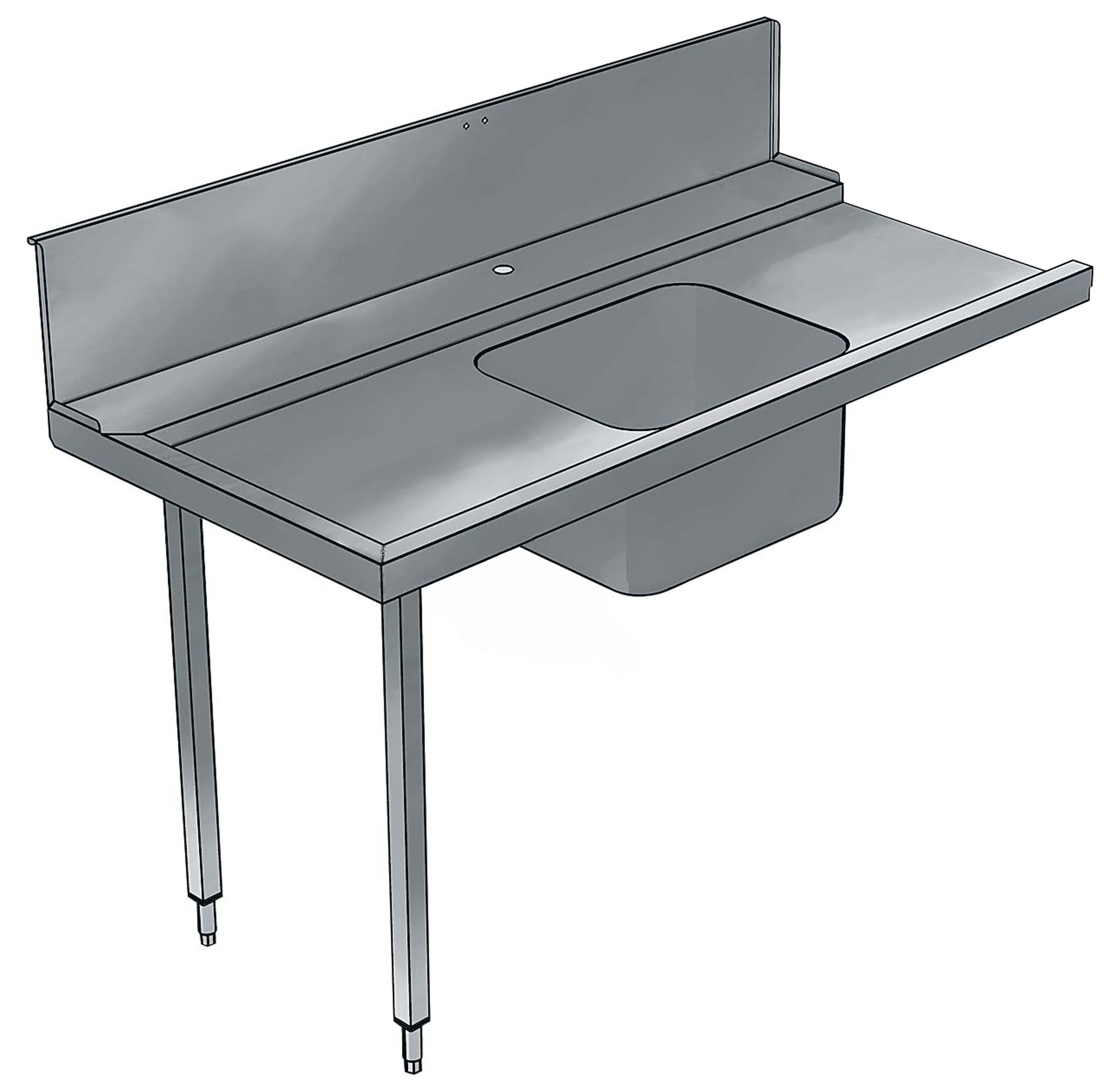 For hood type dishwashers. Constructed in 304 AISI stainless steel. Backsplash mm300h. N. 2 square 40x40mm tubular legs on height-adjustable feet. Bowl size mm500x400x300h with overflow pipe, drain hole and plastic syphon. Basket direction: from left to right.