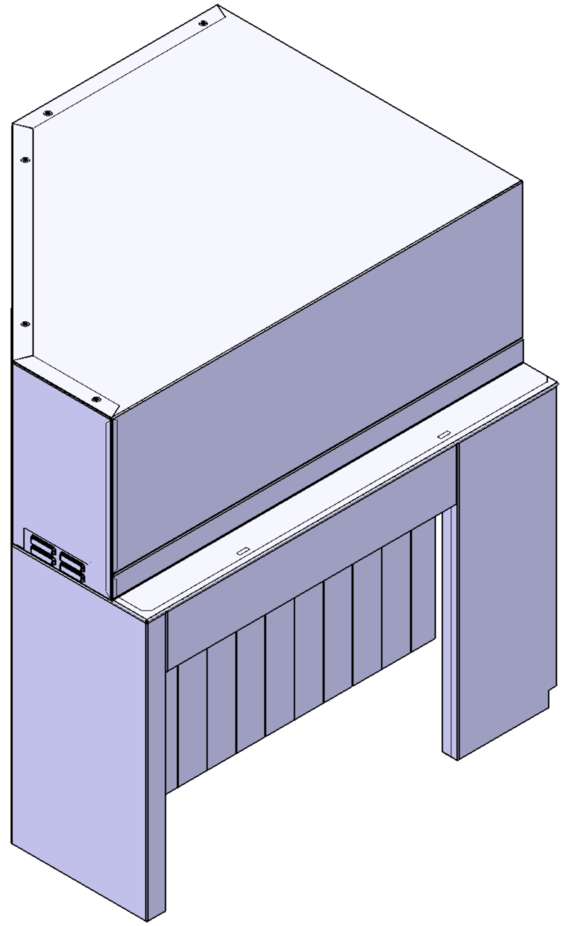 Corner dryer for compact rack type dishwashers. 304 AISI stainless steel construction. It provides completely dry dishes thanks to the high air temperature (50°-60°C) and the low humidity. The addition of the external air reduces the internal humidity thus increasing the drying efficiency. Electric heating by means of armoured elements and fan. Circulating air: 600 m³/h. Feeding direction from right to left.