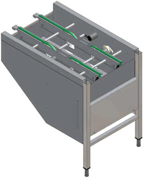 Constructed in 304 AISI stainless steel. Square 40x40mm tubular legs on height-adjustable feet. Variable speed controlled by the dishwasher. Emergency stop button. Feed direction left to right. For rack type dishwashers with a speed less than or equal to 180 R/H.