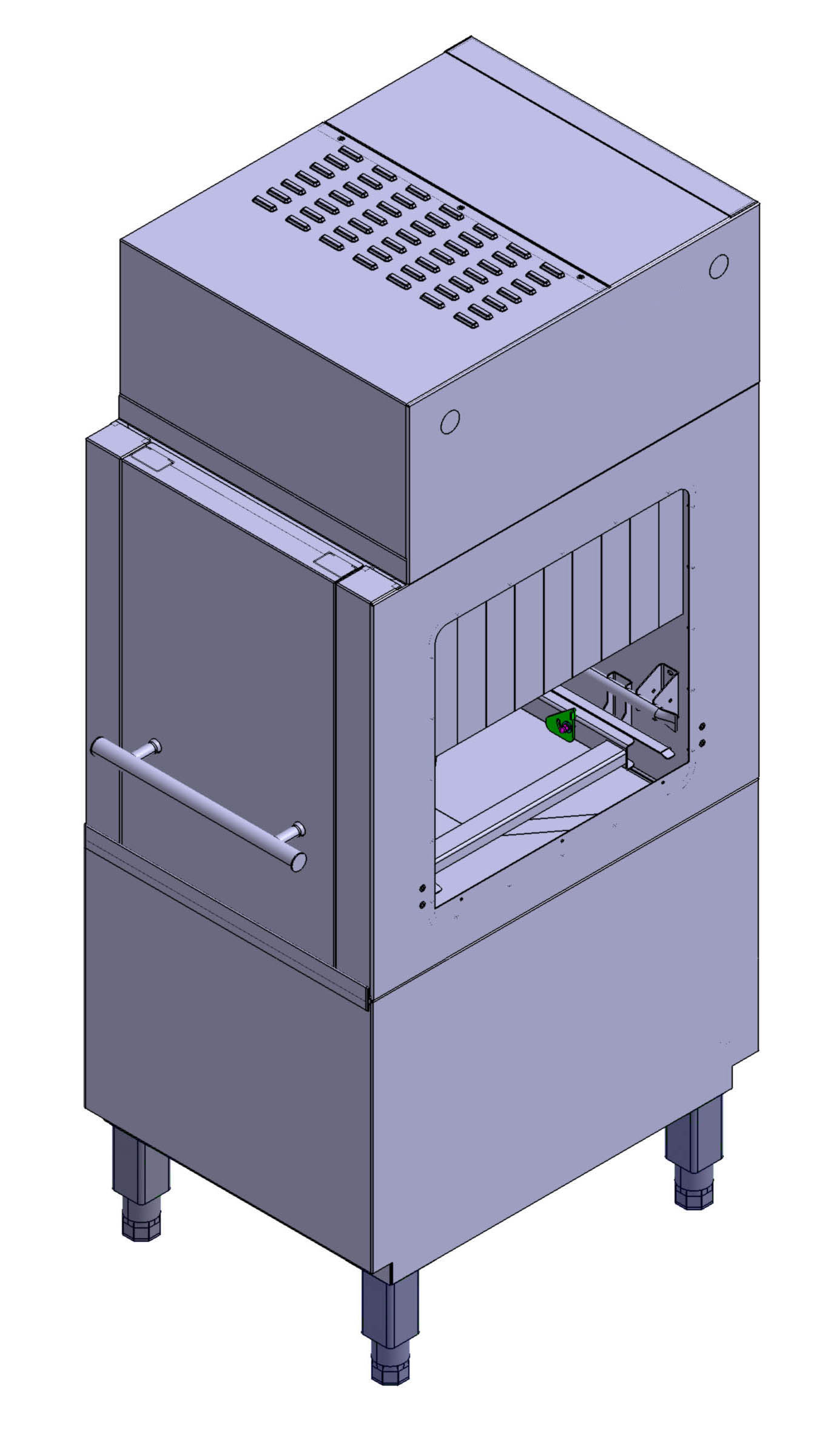 Drier for modular heavy duty rack type dishwashers. 304 AISI stainless steel front, side and top panels. Suitable to exploit the high productivity of rack type dishwashers. It provides completely dry dishes thanks to the use of both external and internal air. The addition of the external air reduces the internal humidity thus increasing the drying efficiency. Door for easier access. Feeding direction from left to right.