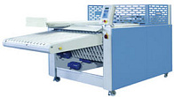 Towel folder featuring 1, 2 or 3 length folds combined with 1 cross fold and stacking to process any kind of towel