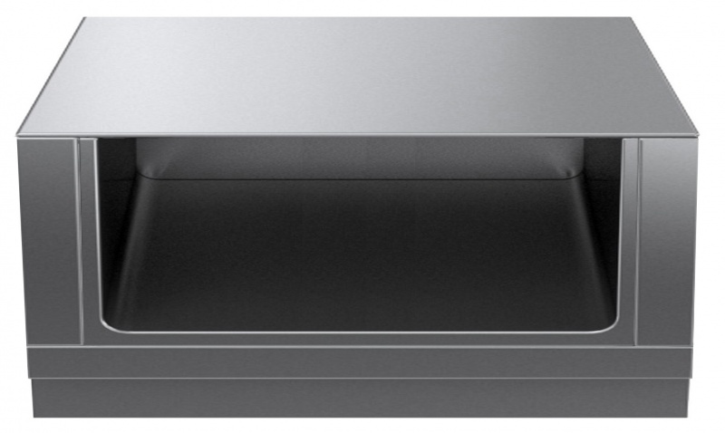 1200 mm wide open base compartment to store pots, pans, sheet pans, etc. with hygienic design and round edges. Unit constructed according to DIN 18860_2 with 70 mm recessed plinth. Internal frame for heavy duty sturdiness in 2 mm and 3 mm in 1.4301 (AISI 304). 2 mm top in 1.4301 (AISI 304). Flat surface construction, easily cleanable. THERMODUL connection system enables seamless worktop when units are connected and avoids soil penetrating.
