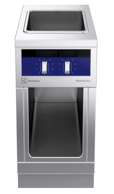 Unit constructed according to DIN 18860_2 with 20 mm drop nose top and 70 mm recessed plinth. Internal frame for heavy duty sturdiness in 2 mm and 3 mm in 1.4301 (AISI 304). 2 mm top in 1.4301 (AISI 304). Flat surface construction, easily cleanable. THERMODUL connection system enables seamless worktop when units are connected and avoids soil penetrating. Multi-purpose cooking appliance which can be used to shallow fry, cook liquids or as a bain marie. 18 mm-thick stainless steel plated bottom, seamlessly welded to the chrome nickel steel well. Powerblock heating system for optimal temperature distribution, which can be set up to 280°C. Interior pan dimensions allows the use of GN containers. Large drain hole to drain the cooking juices into a large collector. All-round basin raised edges to protect against soil infiltration. Overheat protection switches off the supply in case of overheating. Standby function saves energy and quickly recovers maximum power. Metal knobs with embedded hygienic silicon 'soft' grip enable easier handling and cleaning. IPX5 water resistant certification. Configuration: Freestanding, one-side operated.
