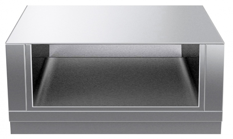 1200 mm wide open base compartment to store pots, pans, sheet pans, etc. with hygienic design and round edges. Unit constructed according to DIN 18860_2 with 70 mm recessed plinth. Internal frame for heavy duty sturdiness in 2 mm and 3 mm in 1.4301 (AISI 304). 2 mm top in 1.4301 (AISI 304). Flat surface construction, easily cleanable. THERMODUL connection system enables seamless worktop when units are connected and avoids soil penetrating.