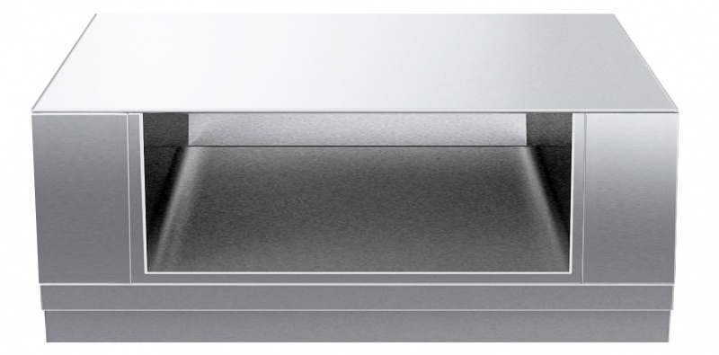 1500 mm wide open base compartment to store pots, pans, sheet pans, etc. with hygienic design and round edges. Unit constructed according to DIN 18860_2 with 70 mm recessed plinth. Internal frame for heavy duty sturdiness in 2 mm and 3 mm in 1.4301 (AISI 304). 2 mm top in 1.4301 (AISI 304). Flat surface construction, easily cleanable. THERMODUL connection system enables seamless worktop when units are connected and avoids soil penetrating.