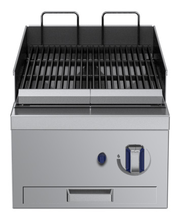 - One-side operated gas chargrill top with backsplash;