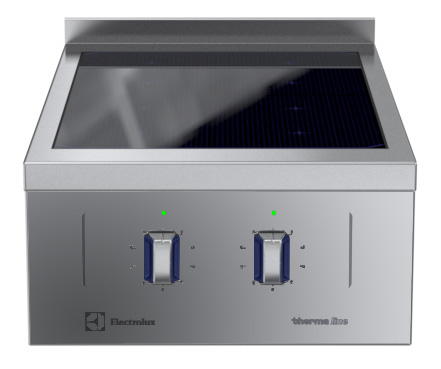 Unit constructed according to DIN 18860_2 with 20 mm drop nose top. Internal frame for heavy duty sturdiness in 2 mm and 3 mm in 1.4301 (AISI 304). 2 mm top in 1.4301 (AISI 304). Flat surface construction, easily cleanable. THERMODUL connection system enables seamless worktop when units are connected and avoids soil penetrating. Glass ceramic cooking surface with 9 power levels and 2 independently controlled infrared heating zones. Overheat protection switches off the supply in case of overheating. Standby function saves energy and quickly recovers maximum power. Metal knobs with embedded hygienic silicon 'soft' grip enable easier handling and cleaning. Residual hot warning system enables safe operations. IPX5 water resistance certification. Configuration: One side operated top with backsplash. The base needs to be supplied by the factory. Please include appropriate base.