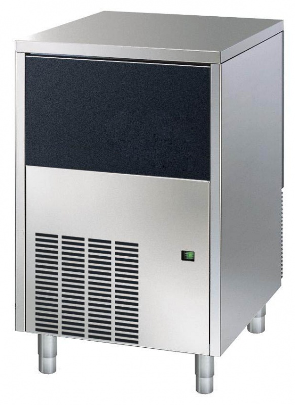 - Air-cooled ice generator with 16 kg hopper, 42 kg/day (cubes)