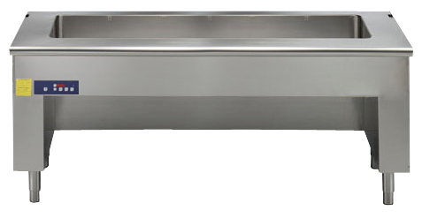 20/10 top, external panelling, base and feet in 304 AISI stainless steel. Insulated construction. 2' round feet, adjustable, 200mm in height.TOP: Bain-Marie Well (+80+90°C) - mm1280x510x200h - can accommodate n. 4x1/1GN (not included). Completely welded, in 304 AISI stainless steel with rounded corners. Automatic water topping up when water evaporates.LOWER COMPARTMENT: Bridge-Type Section - mm1330x650x590h - open on operator's side to accommodate trolleys.Control panel equipped with easy-to-read buttons (ON/OFF, Alarm Service, HACCP button to monitor and record all the critical events, 2 buttons to increase and decrease the temperature, temperature display and thermostat) that cannot be accidentally knocked.