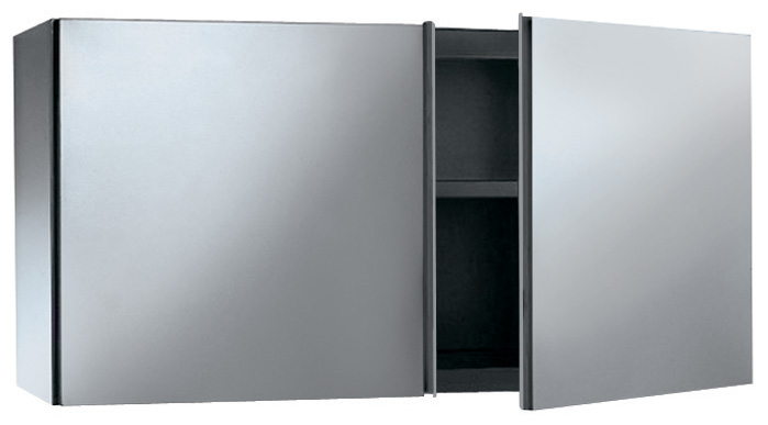 Constructed in stainless steel. Inner door, intermediate shelf, rear panel and reinforcements in stainless steel. Double-walled hinged doors. Handle is formed by a fold in the door. Back and bottom are made from a single bended stainless steel sheet for easier cleaning. Loading capacity: 80kg.